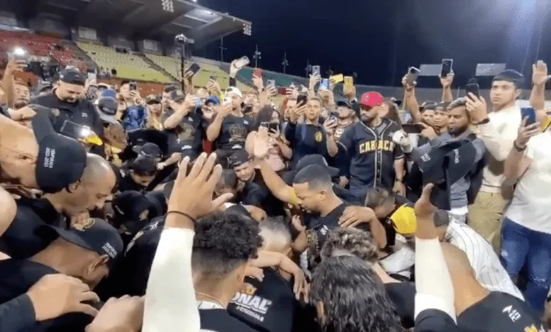 El equipo de beisbol Leones de Caracas dobla rodilla a Dios