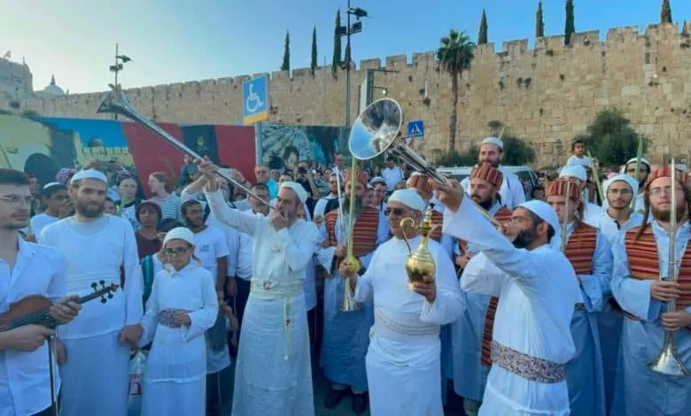 El culto comenzó en la Shaar Hashpot (puerta de la basura). Se realizó una procesión donde una multitud de fieles les acompañó con cantos y danzas mientras avanzaban hacia la antigua Ciudad de David con destino al manantial de Siloé. Durante el recorrido la procesión se detuvo varias veces para hacer sonar las trompetas de plata pura que hace años se habían construido para esta ocasión. Todo lo que ocuría estuvo supervisado por rabinos del Instituto del Templo.